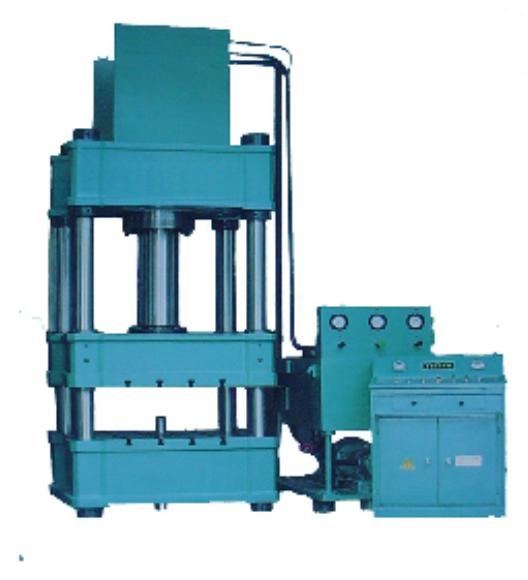 性能特点:三梁四柱式结构,经计算机优化设计,简单、经济、适用。液压控制系统采用插装阀集成系统,动作可靠,使用寿命长,液压冲击小,减小了连结管路与泄漏点。独立的电气控制系统,工作可靠,动作直观,维修方便。采用按钮集中控制,设调整(点动),单次(半自动)二种操作方式。可实现定程,定压二种成型工艺,并具有保压延时等性能。工作压力、行程根据工艺需要在规定的范围内可调。