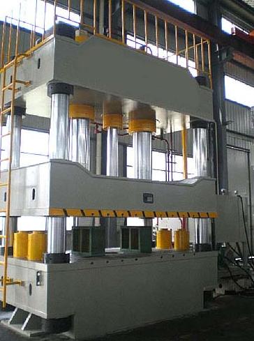 性能特点:三梁四柱式结构,经计算机优化设计,简单、经济、适用。液压控制系统采用插装阀集成系统,动作可靠,使用寿命长,液压冲击小,减小了连结管路与泄漏点。独立的电气控制系统,工作可靠,动作直观,维修方便。采用按钮集中控制,设调整(点动),单次(半自动)二种操作方式。可实现定程,定压二种成型工艺,并具有保压延时等性能。工作压力、行程根据工艺需要在规定的范围内可调。